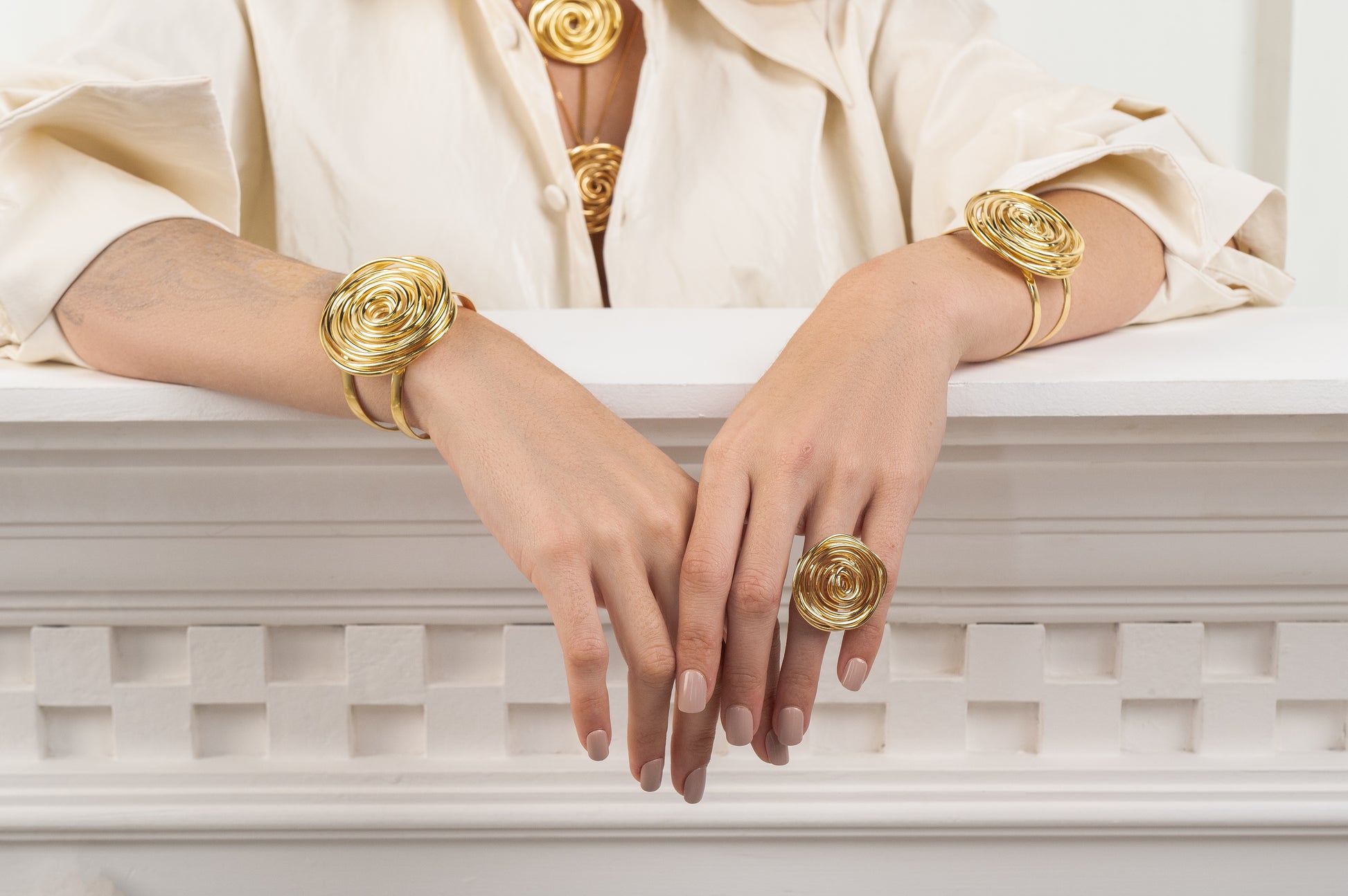 O Bracelete Rosa de Ferro é uma peça sofisticada que combina design autoral com versatilidade. Feito à mão em metal nobre, este bracelete oferece a possibilidade de ser usado em diferentes formatos, adaptando-se ao estilo e à ocasião. Disponível em banhos de ouro 18k ou prata, possui acabamento com verniz italiano, garantindo brilho e durabilidade excepcionais.